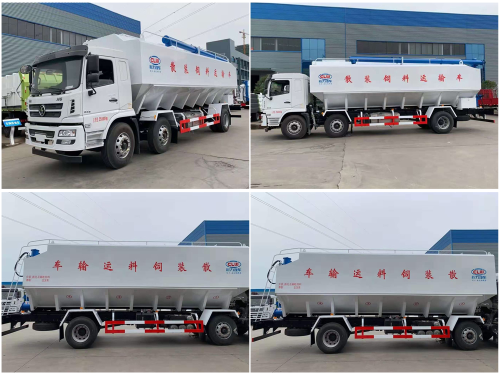 散裝飼料車,又名散裝飼料運輸車,飼料運輸車。結(jié)構(gòu)簡單、性能可靠、輸送量大、操控方便、機動性強、對物料無污染等特點,廣泛應用于各大中小型養(yǎng)殖企業(yè)的飼料的運輸。主要用于從飼料廠向畜牧場、養(yǎng)禽場及飼料加工用戶運輸散裝飼料成品或飼料生產(chǎn)原糧,同時它也可用來運輸某些無腐蝕性粉粒狀原料,如制藥廠粉料和糧庫周轉(zhuǎn)。