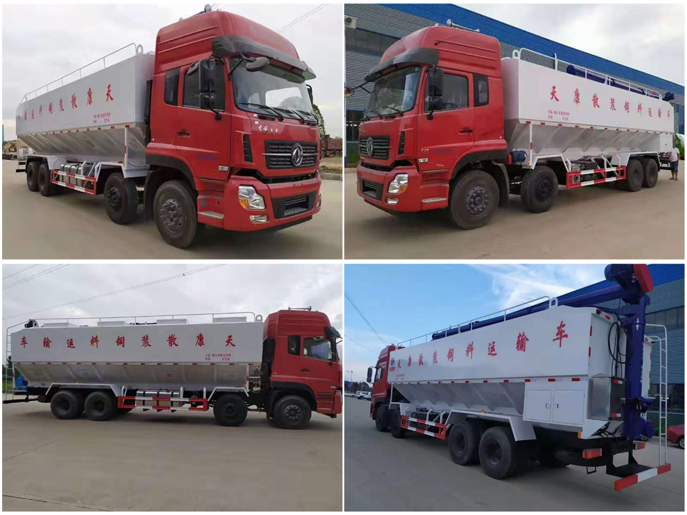 散裝飼料車,又名散裝飼料運(yùn)輸車,飼料運(yùn)輸車。結(jié)構(gòu)簡(jiǎn)單、性能可靠、輸送量大、操控方便、機(jī)動(dòng)性強(qiáng)、對(duì)物料無(wú)污染等特點(diǎn),廣泛應(yīng)用于各大中小型養(yǎng)殖企業(yè)的飼料的運(yùn)輸。主要用于從飼料廠向畜牧場(chǎng)、養(yǎng)禽場(chǎng)及飼料加工用戶運(yùn)輸散裝飼料成品或飼料生產(chǎn)原糧,同時(shí)它也可用來(lái)運(yùn)輸某些無(wú)腐蝕性粉粒狀原料,如制藥廠粉料和糧庫(kù)周轉(zhuǎn)。